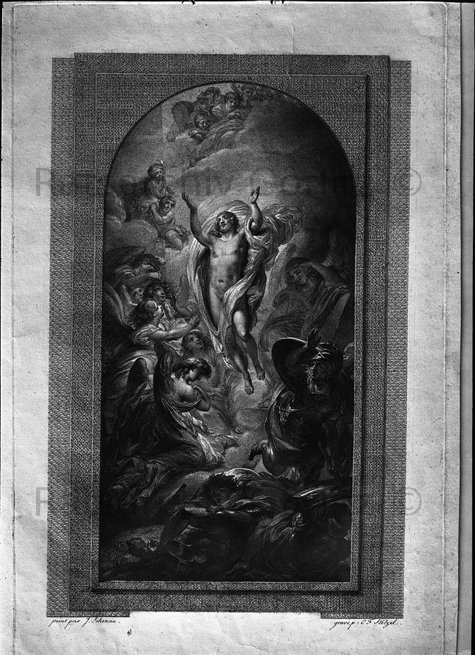 Nach J.C. Zeisig Schenau Altarbild "Auferstehung Christi" - Großschönau - Radierung, Gemälde/Bild