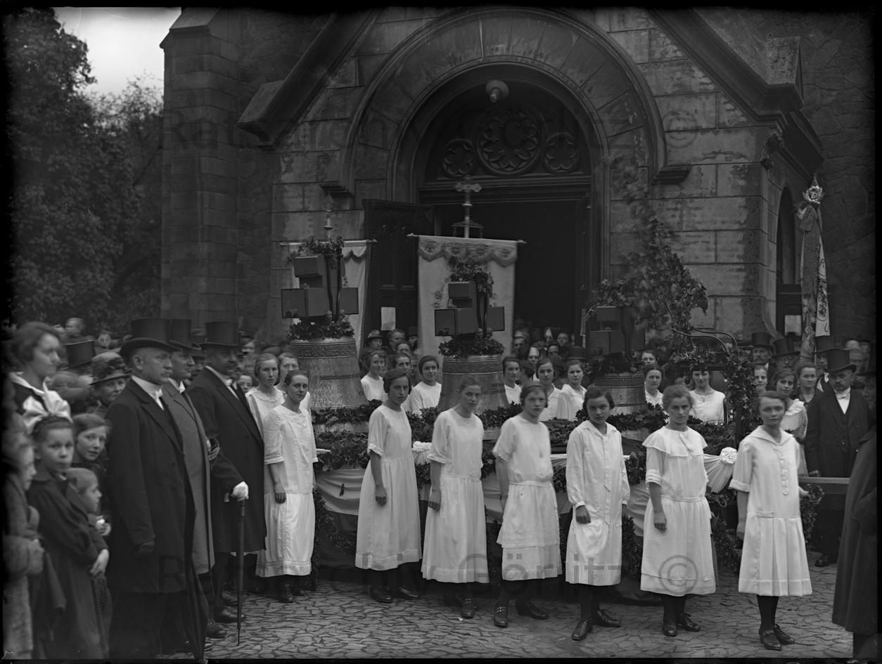 Feierlichkeit vor der Kirche Heilig Kreuz Glockenweihe, Kirche
