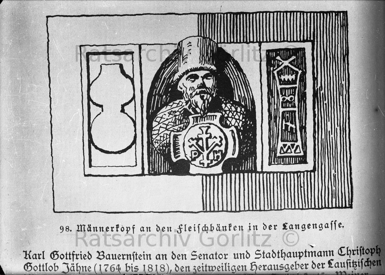 Männerkopf an den Fleischbänken der Langengasse, Innungszeichen