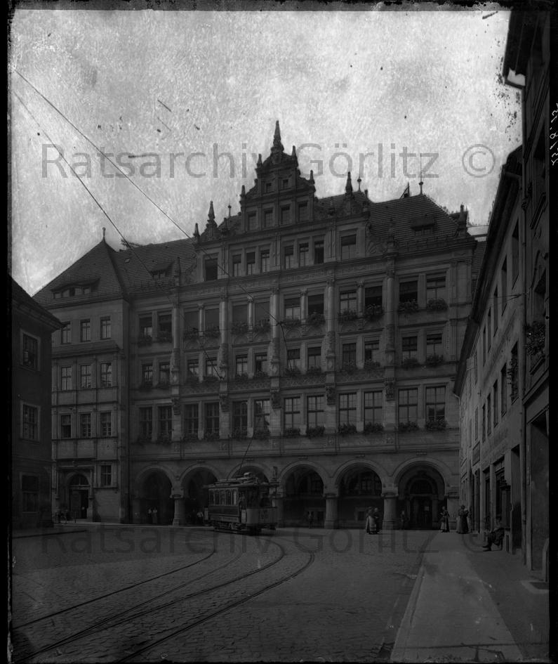 Untermarkt mit Rathaus und Straßenbahn, 1915, Untermarkt