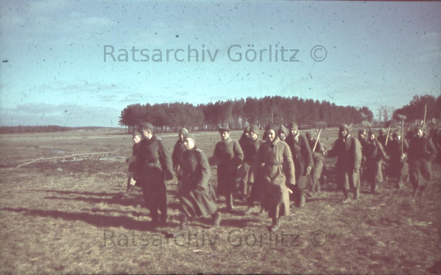 Auf dem Marsch, Soldaten mit Schaufeln