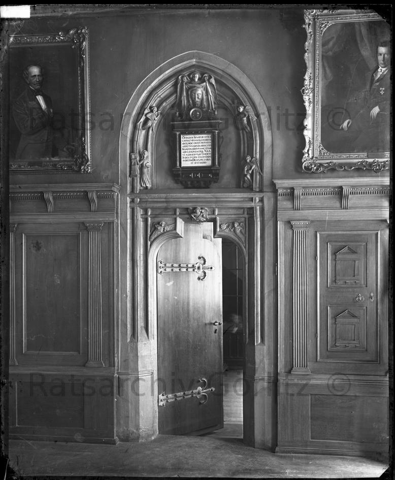 Rathaus, gotische Tür im Ratssaal, Rathaus