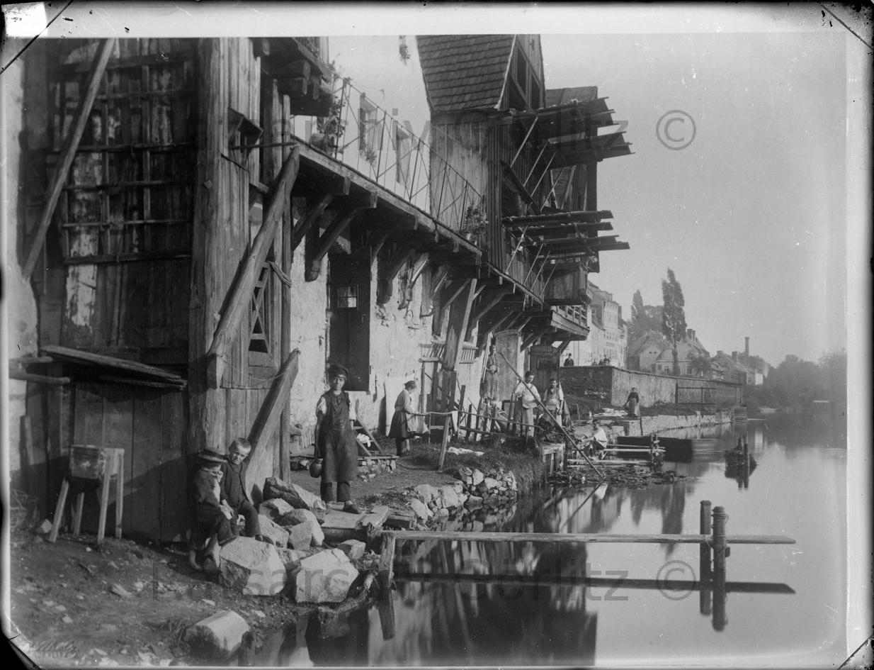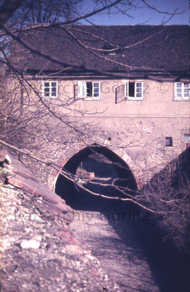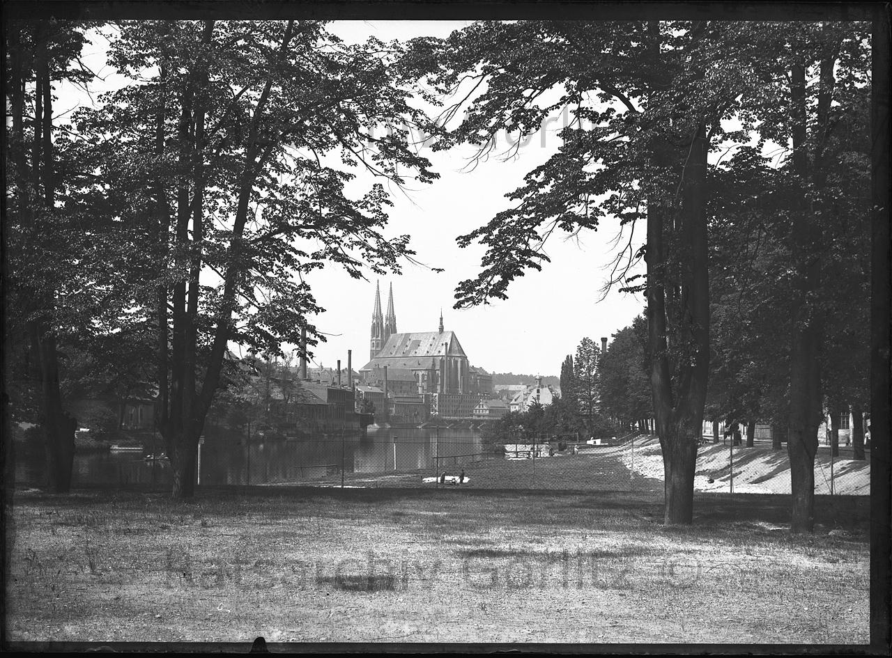 Neißeufer Ostseite im Hintergrund Ruhmeshalle, Neiße