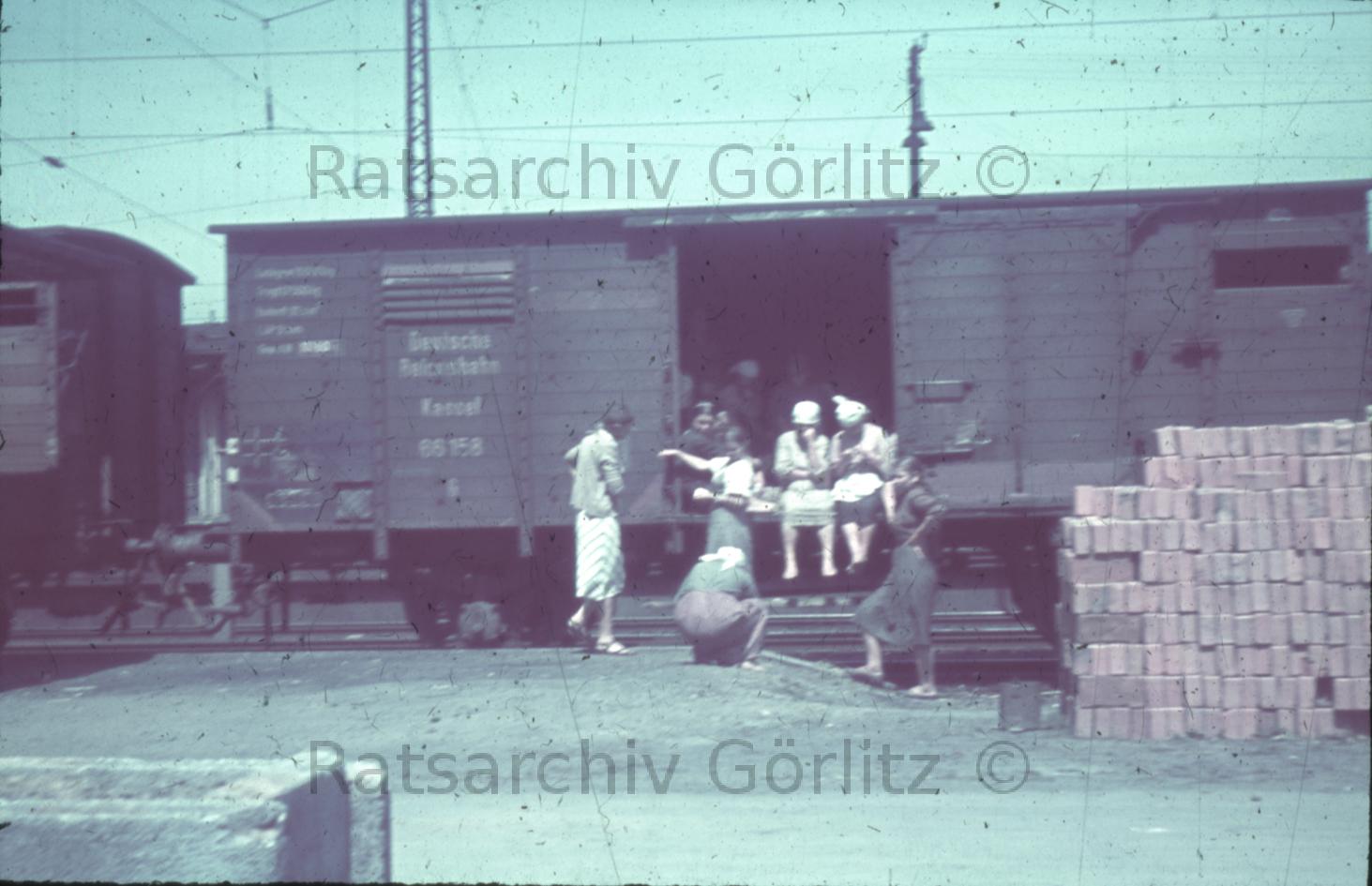 Ankunft Zwangsarbeitertransport, Ostarbeiterinnen in Güterwagen