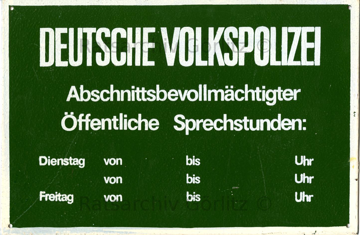 Schild Deutsche Volkspolizei, Abschnittsbevollmächtigter