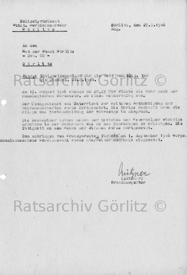 Tätigkeitsbericht Feuerwehr (Schrift)