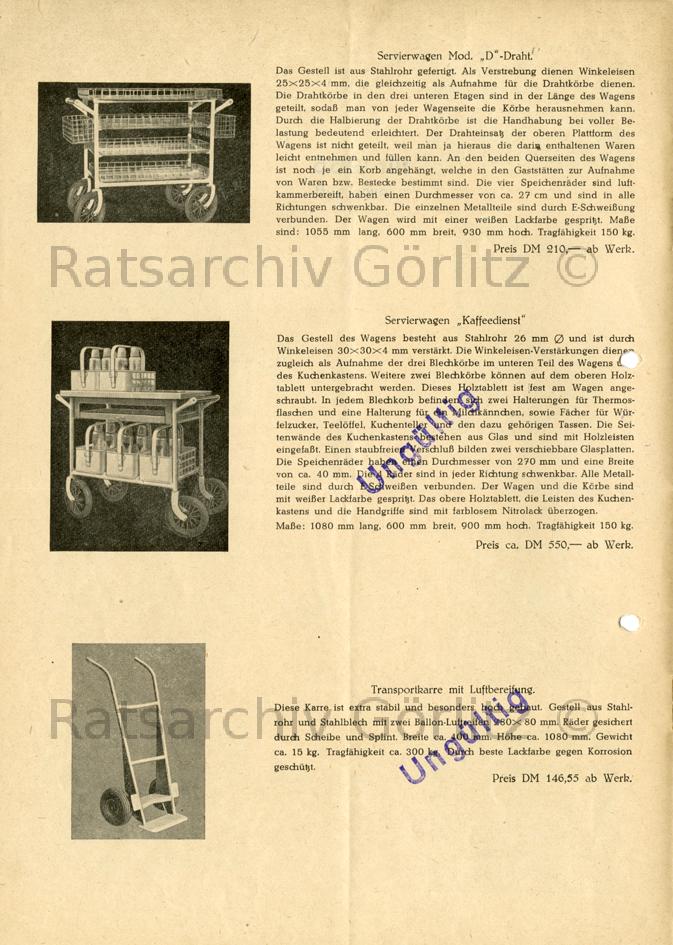 Preisliste für Metall- und Holzmöbel, Richard Harmann Halle