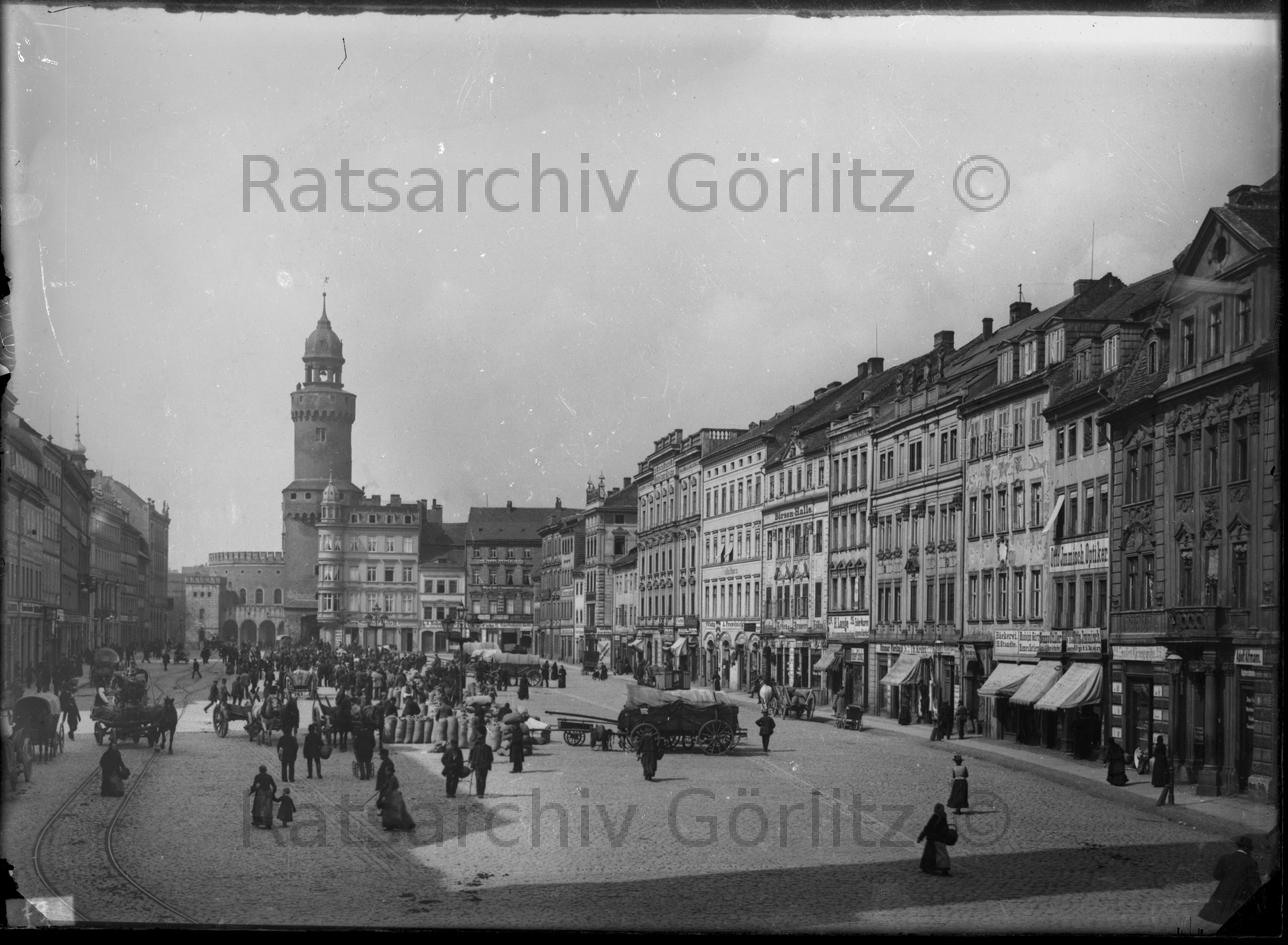 Obermarkt mit Blick zum Kaisertrutz - Treiben auf dem Markt, Befestigung