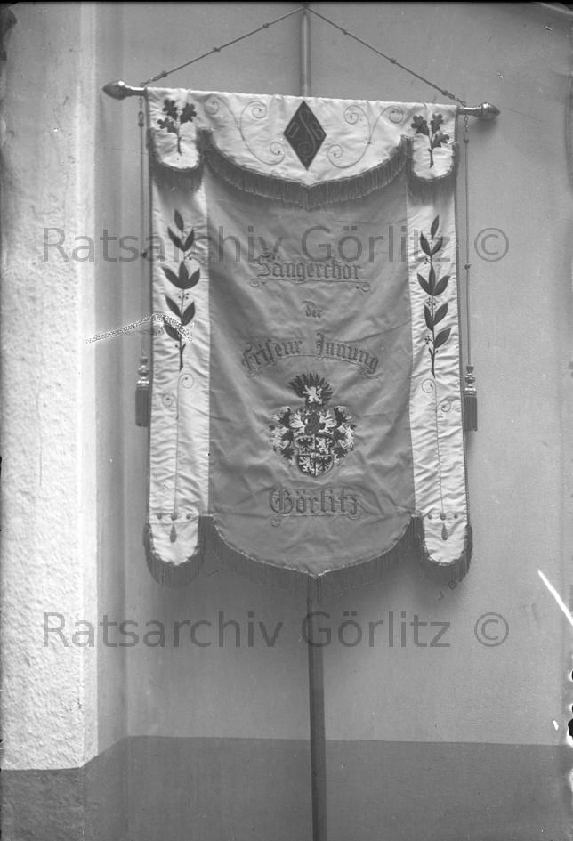 Fahne des Sängerchores der Friseur-Innung, Innungszeichen