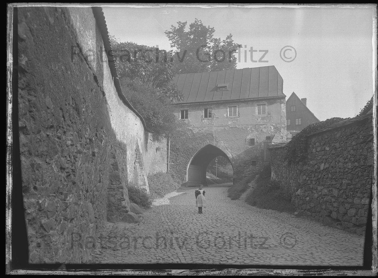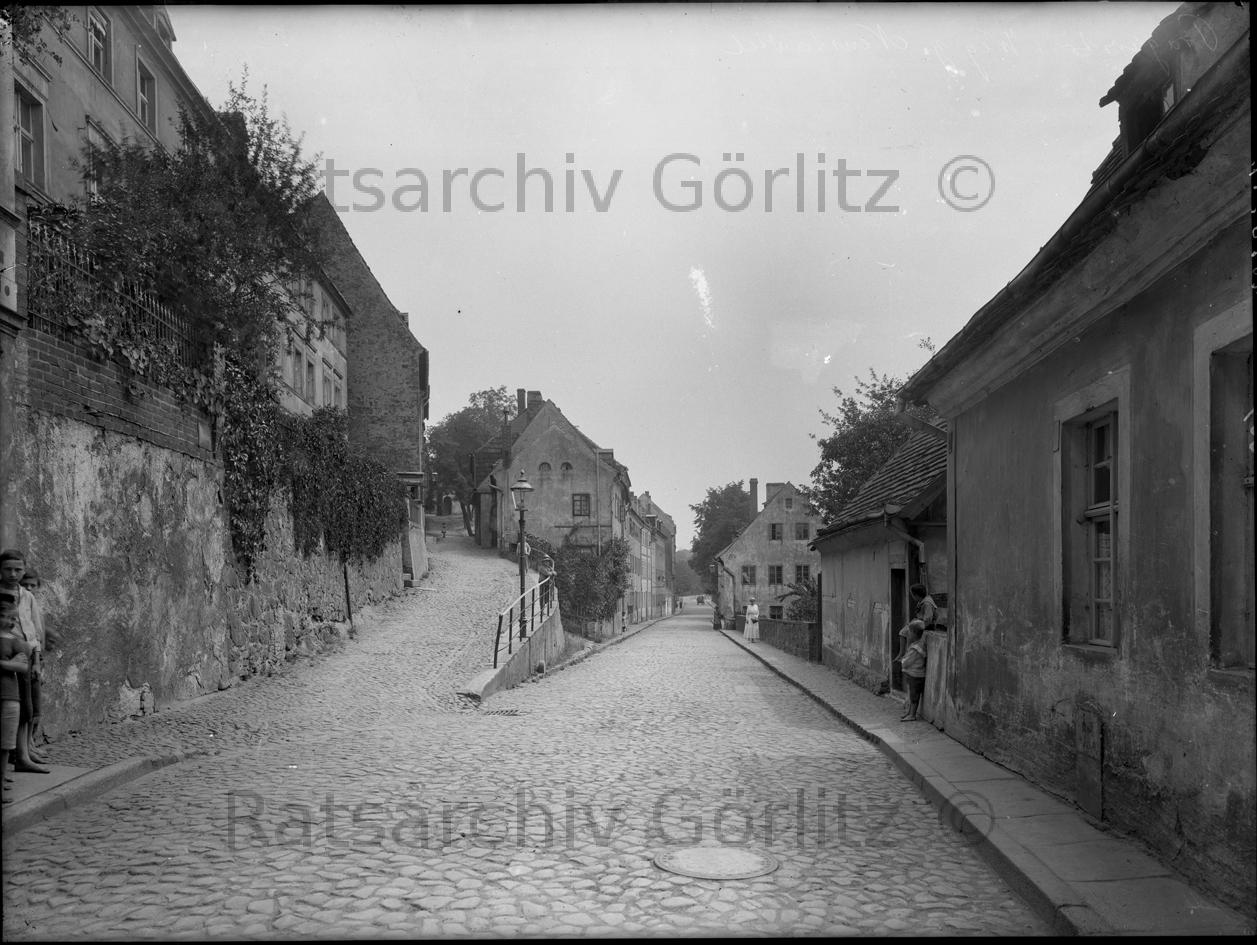 Prager Straße, Weg zum Neustädtchen, 1917 - Aufgang nach dem Scultetushof von Norden, Straße