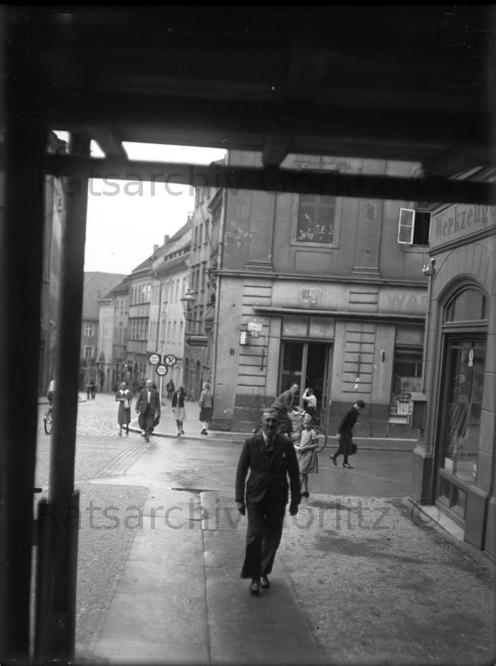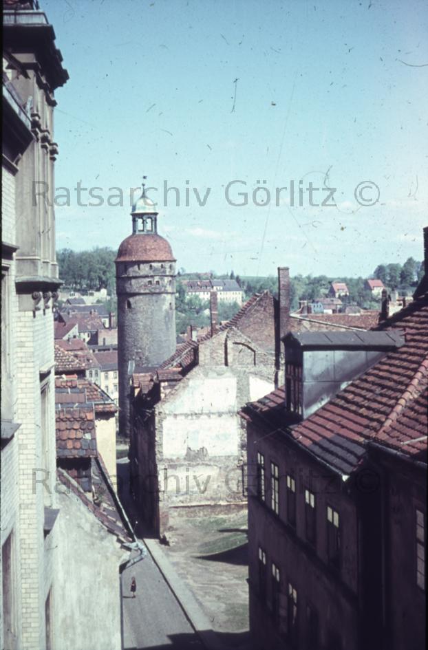 Stadt, Nikolaiturm, von Rathausstraße (Jüdenstraße) gesehen