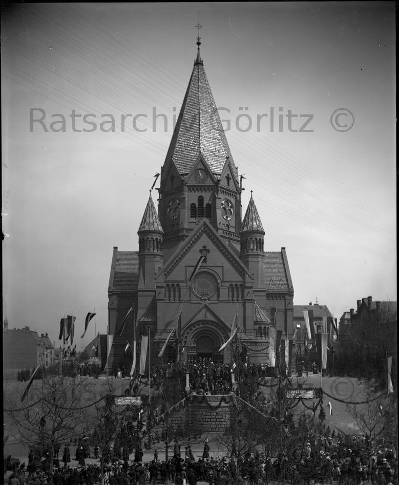 Blick zur Peterskirche von Rothenburger Straße aus, 1915, Kirche