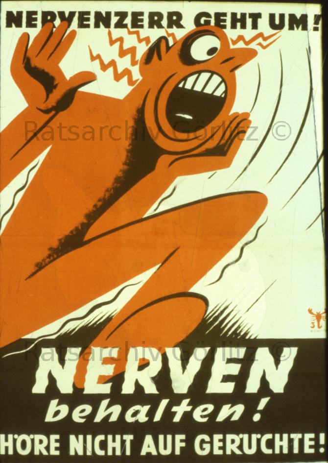 Plakat Nerven behalten, Höre nicht auf Gerüchte, Herst. Unternehmen Skorpion