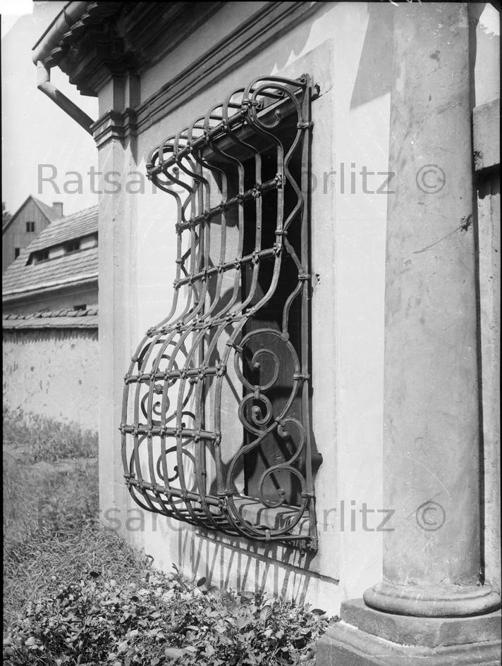 Gruft-Fenstergitter an der östlichen Mauer des Nikolaikirchhofes, Friedhof