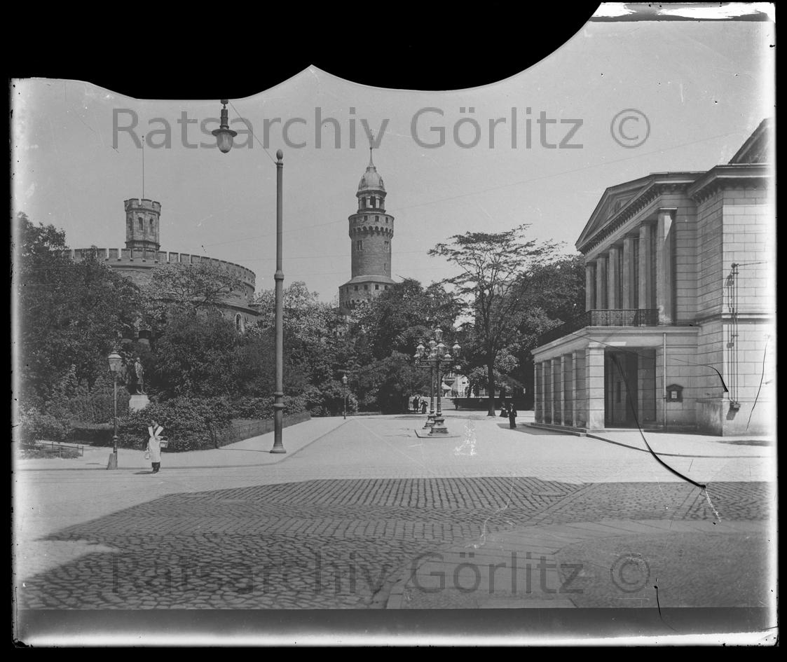 Demianiplatz mit Stadttheater, Kaisertrutz und Reichenbacher Turm, Theater
