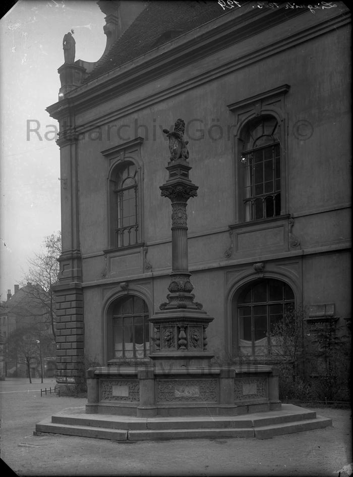 Brunnen und Gebäude in Liegnitz in Schlesien