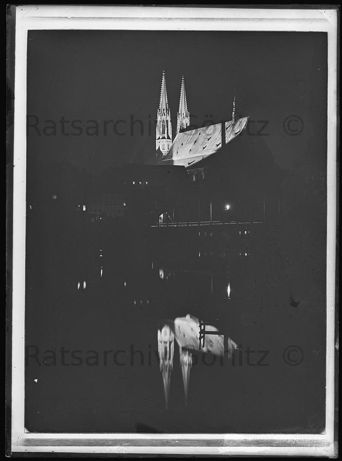 Blick zur Peterskirche, Kirchen, Nachtaufnahme