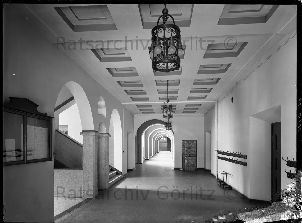 Hausflur der Oberrealschule und des Reform-Realgymnasiums Ecke Lessingstraße/ Seydewitzstraße, 1913, Höhere Schule