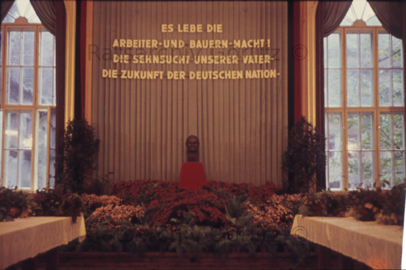 Stadt, Blumenschmuck, Büste Wilhelm Pieck