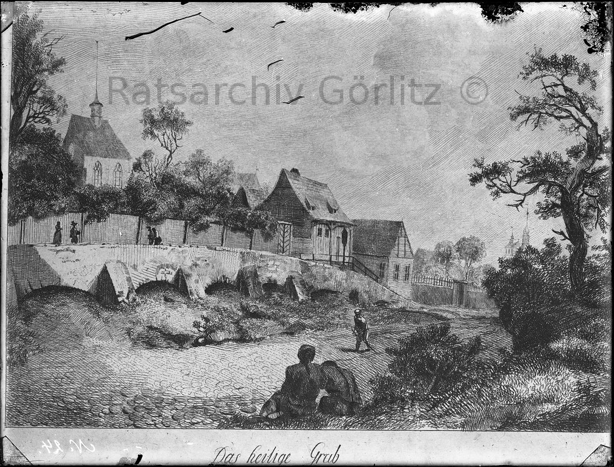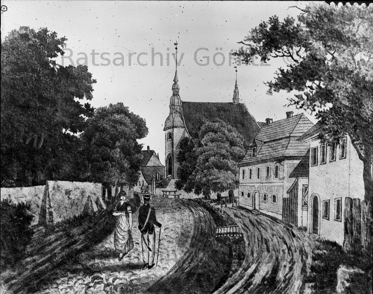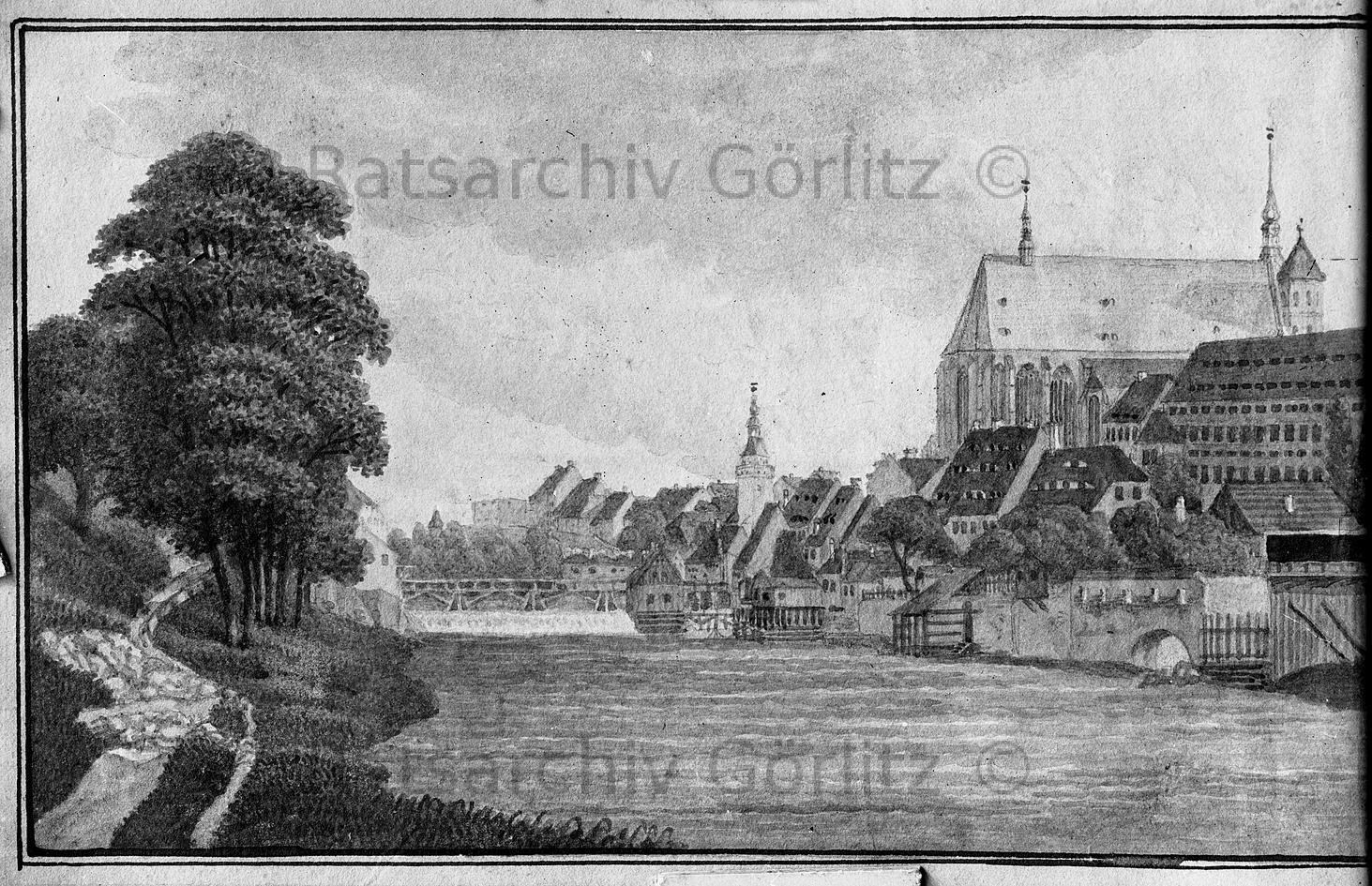Lithographie: Peterskiche mit Neiße, Gemälde / Bild