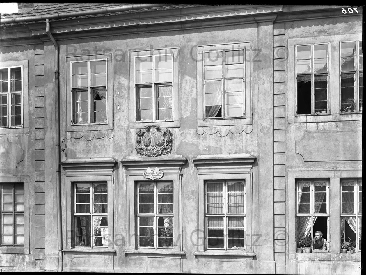 Fensterpartie und Wappen, Nikolaistraße 7, Straße