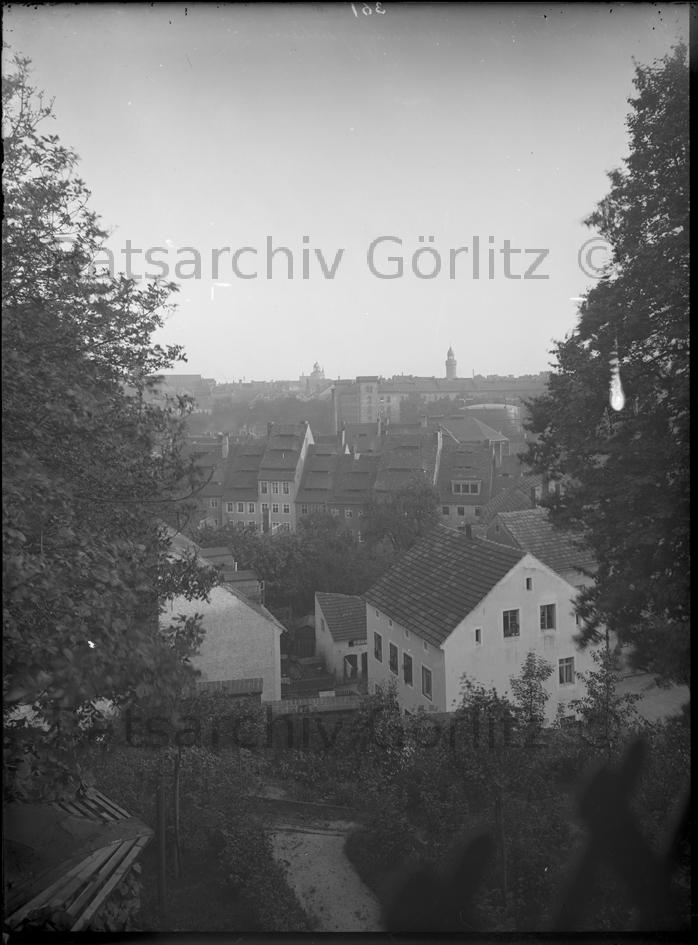 Fußgängerstiege oberhalb des oberen Steinweges mit Blick auf Altstadt, 1913, Stadtansicht