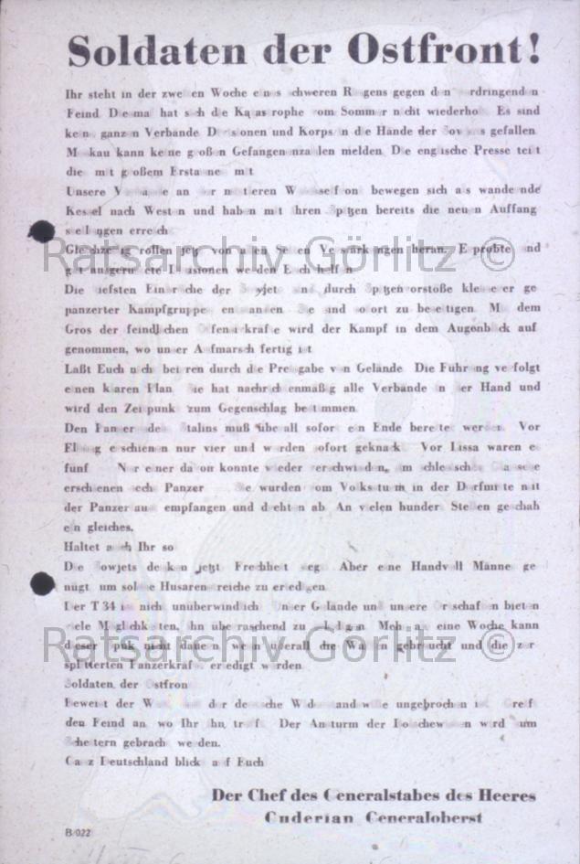 Soldaten der Ostfront, unterzeichnet: gen.-Oberst Guderian