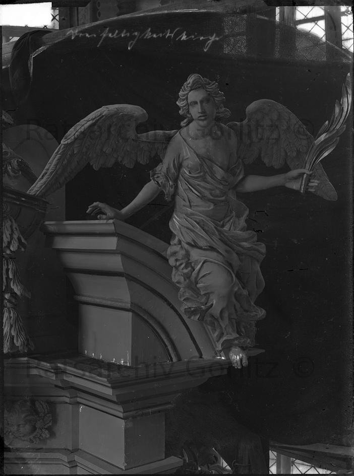 Dreifaltigkeitskirche innen, Skulptur am Altar, Kirche