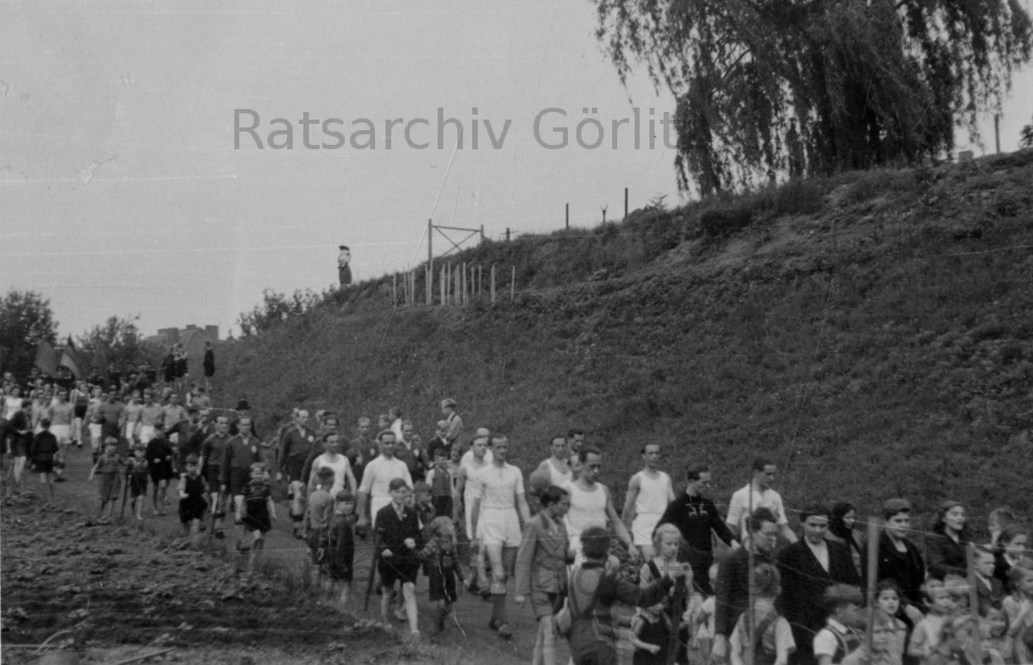 Einmarsch der männlichen Sportle auf dem Sportplatz