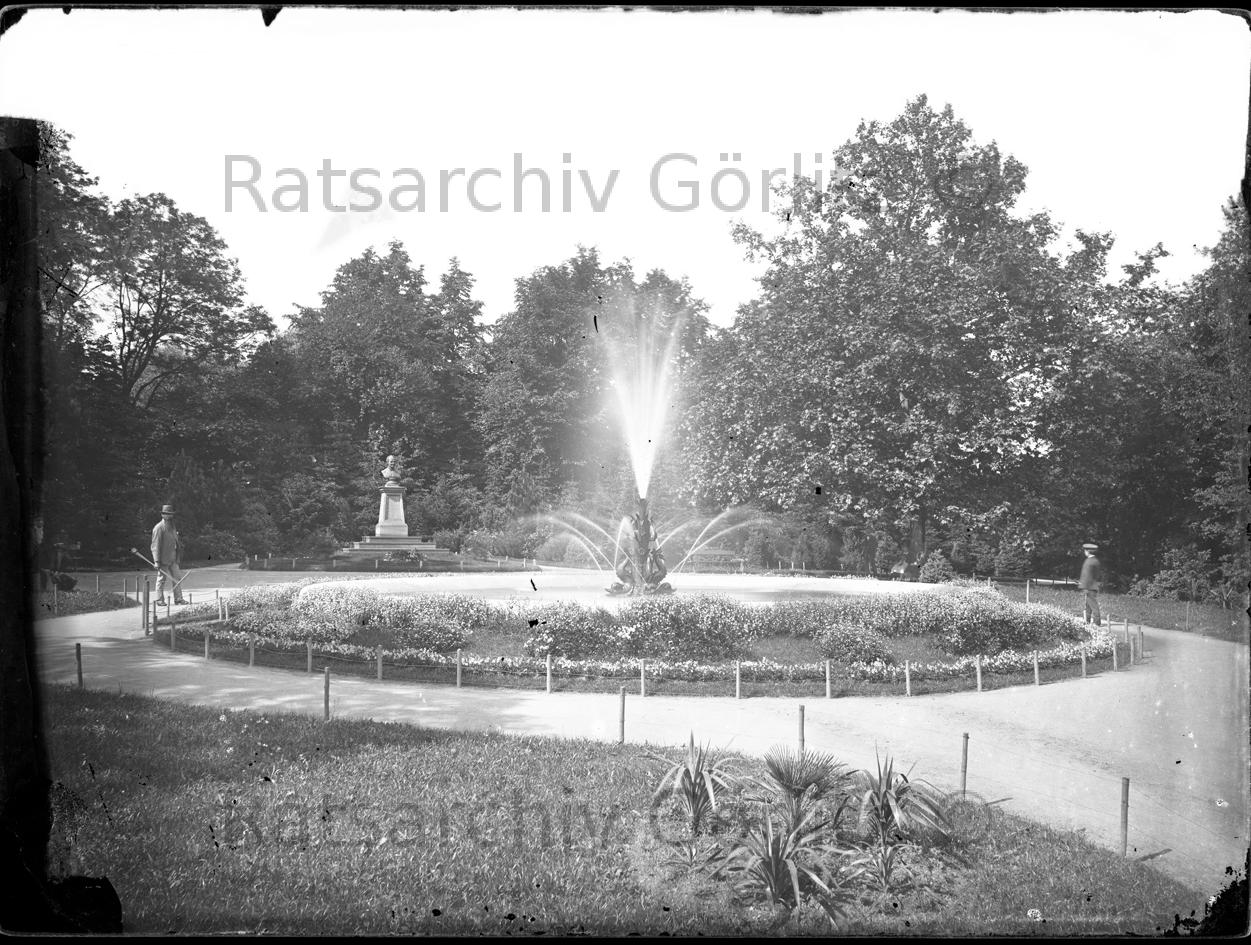 Springbrunnen im Stadtpark, im Hintergrund das Humboldt-Denkmal, Denkmal
