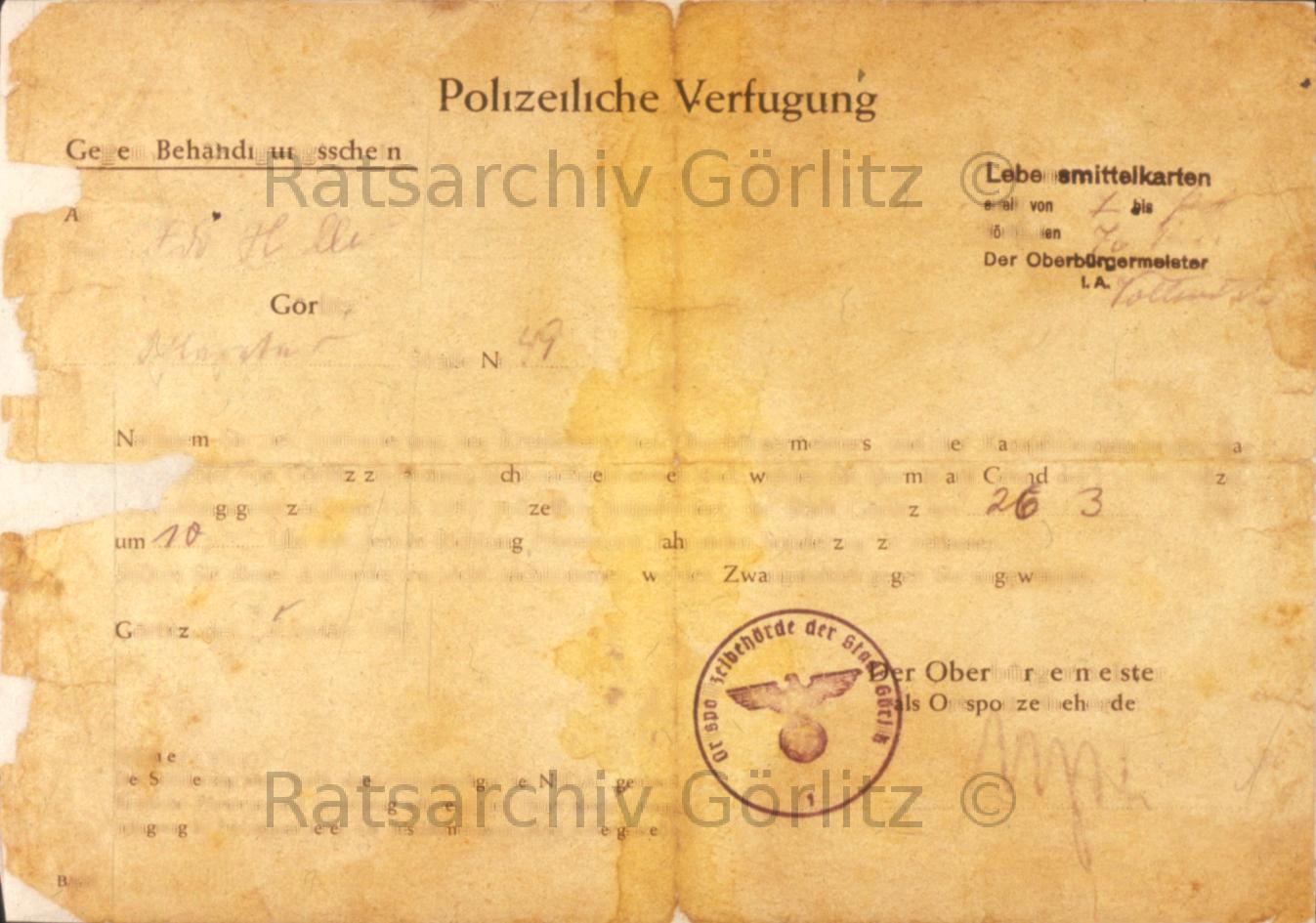 Zustellung Polizeiliche Verfügung, Evakuierungsbescheid für Ida Hiller Schlageterstraße 99