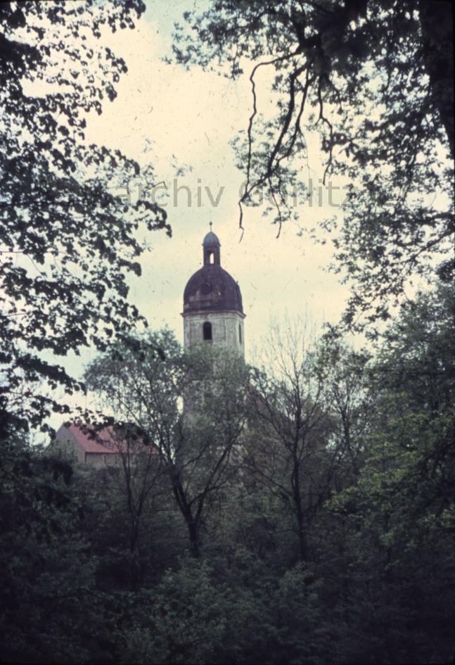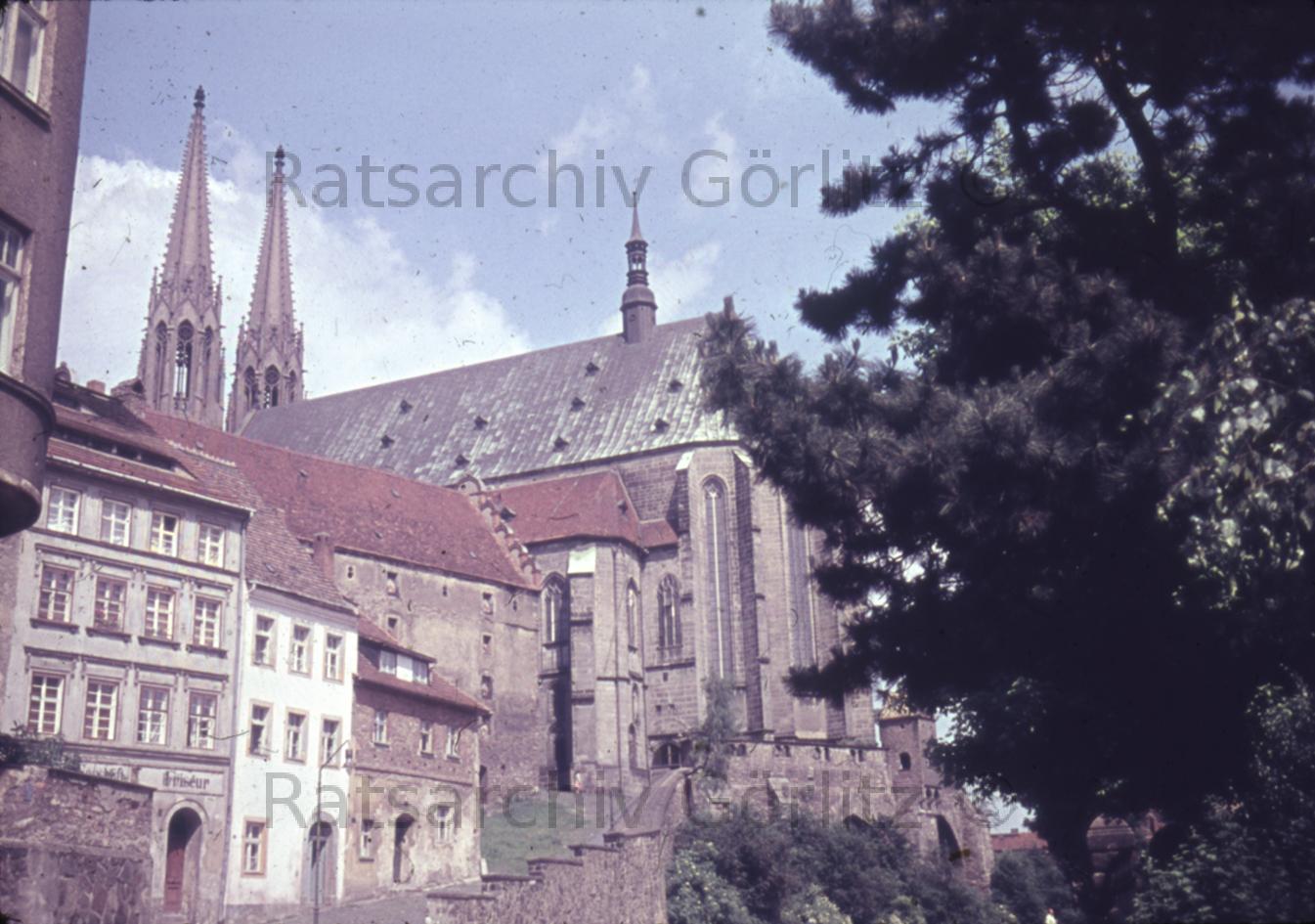 Blick von Prager Straße auf Peterskirche und Weißgerberei, Kirche