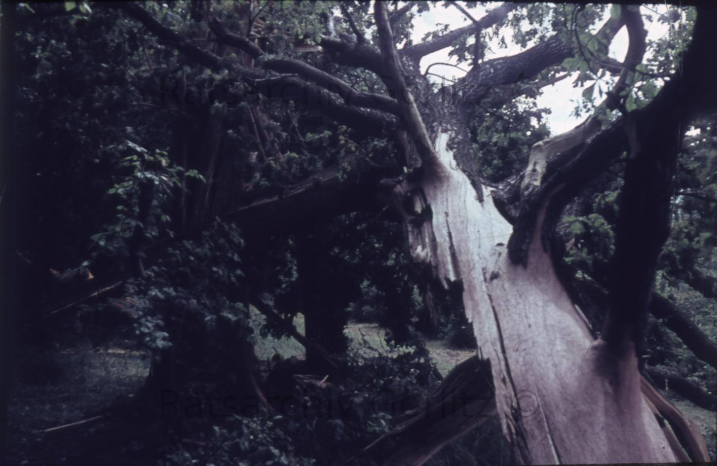 Stadt, Eiche, vom Blitz getroffen
