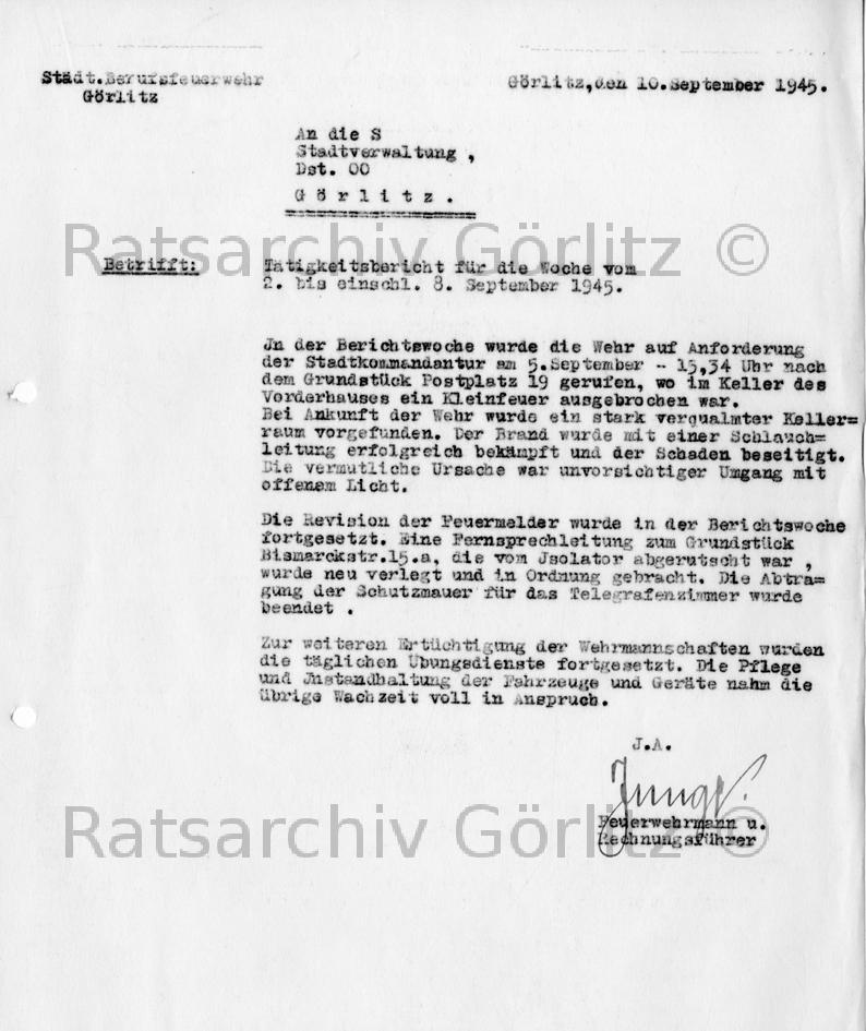 Tätigkeitsbericht Feuerwehr (Schrift)