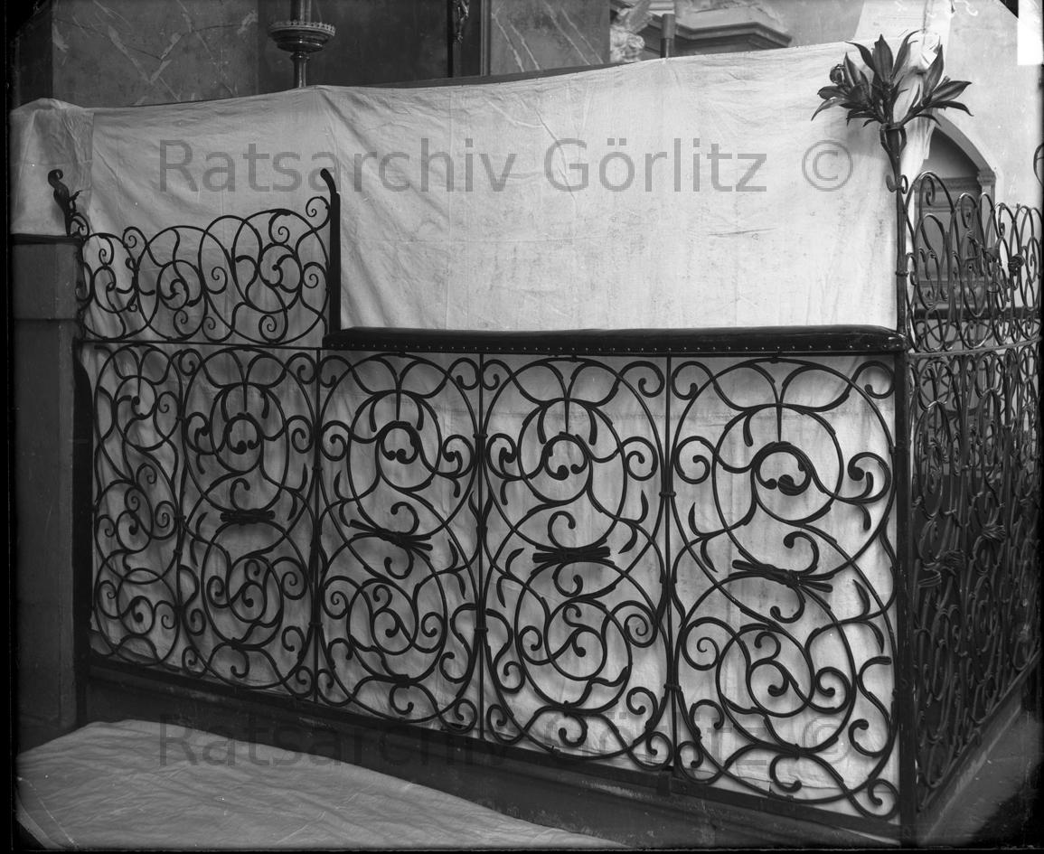 Peterskirche innen - Schmiedegitter am Altar, Kirche