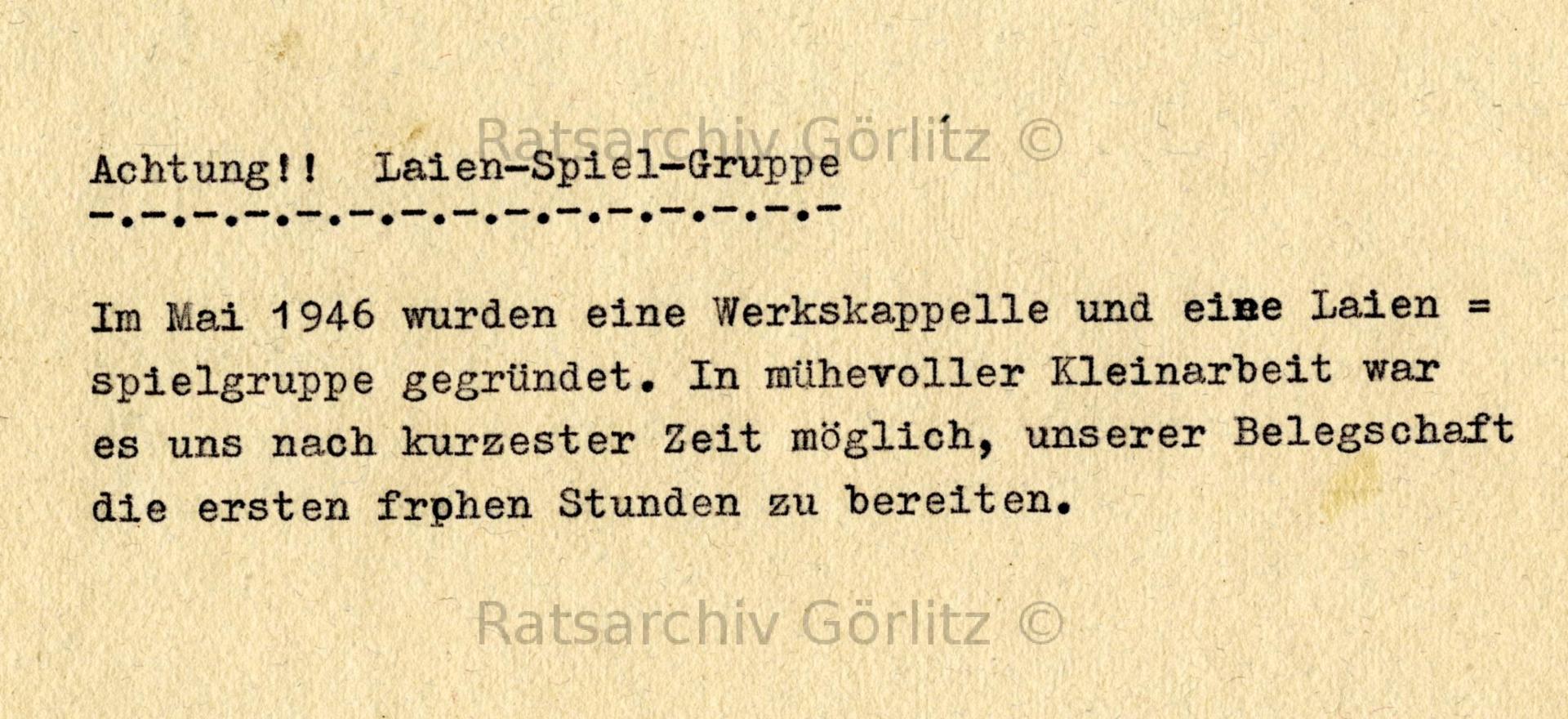 Gründung Werkskapelle und Laienspielgruppe