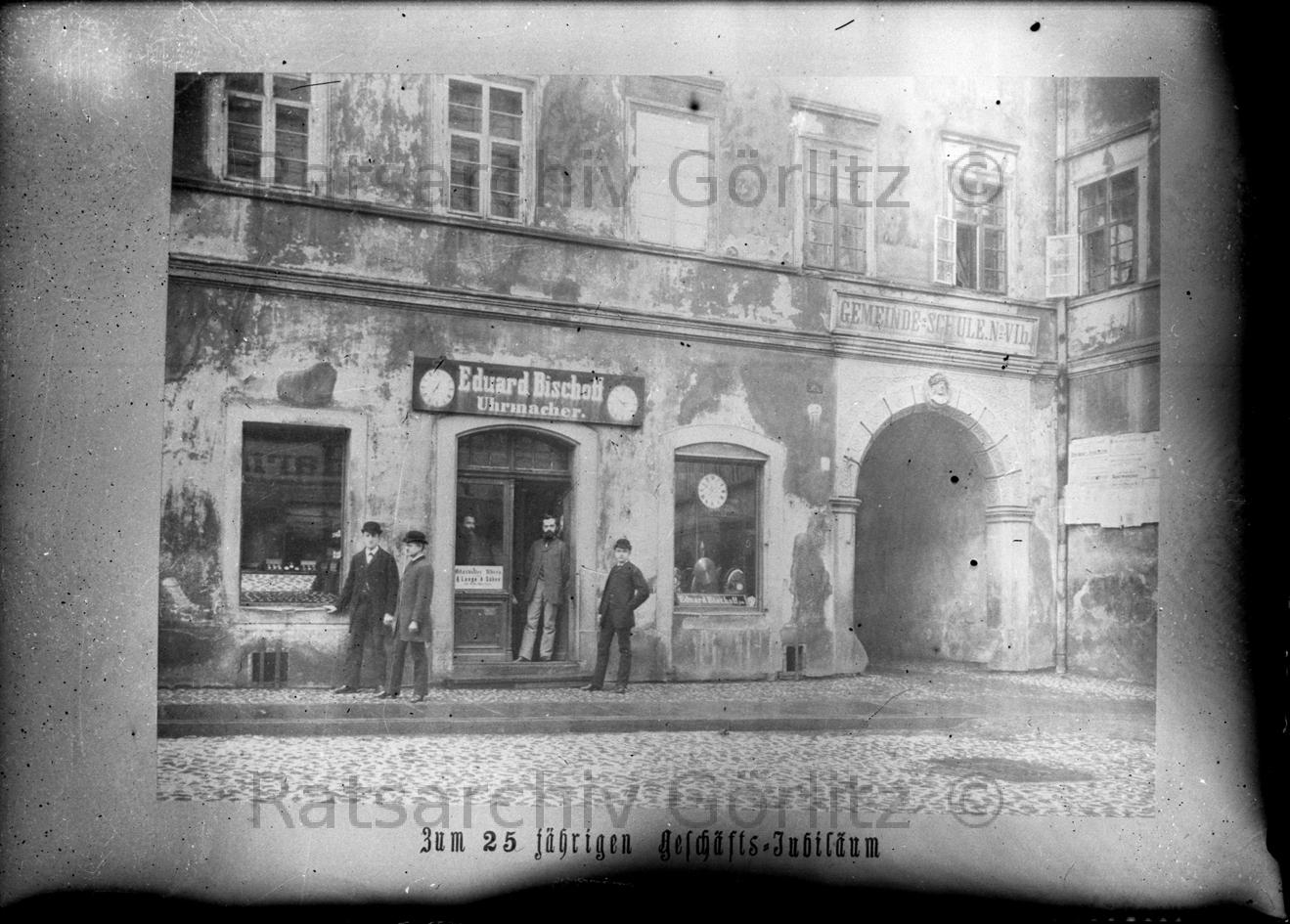 Laden von Uhrmacher Eduard Bischoff am Fischmarkt, zu 25 jährigem Geschäfts-Andenken