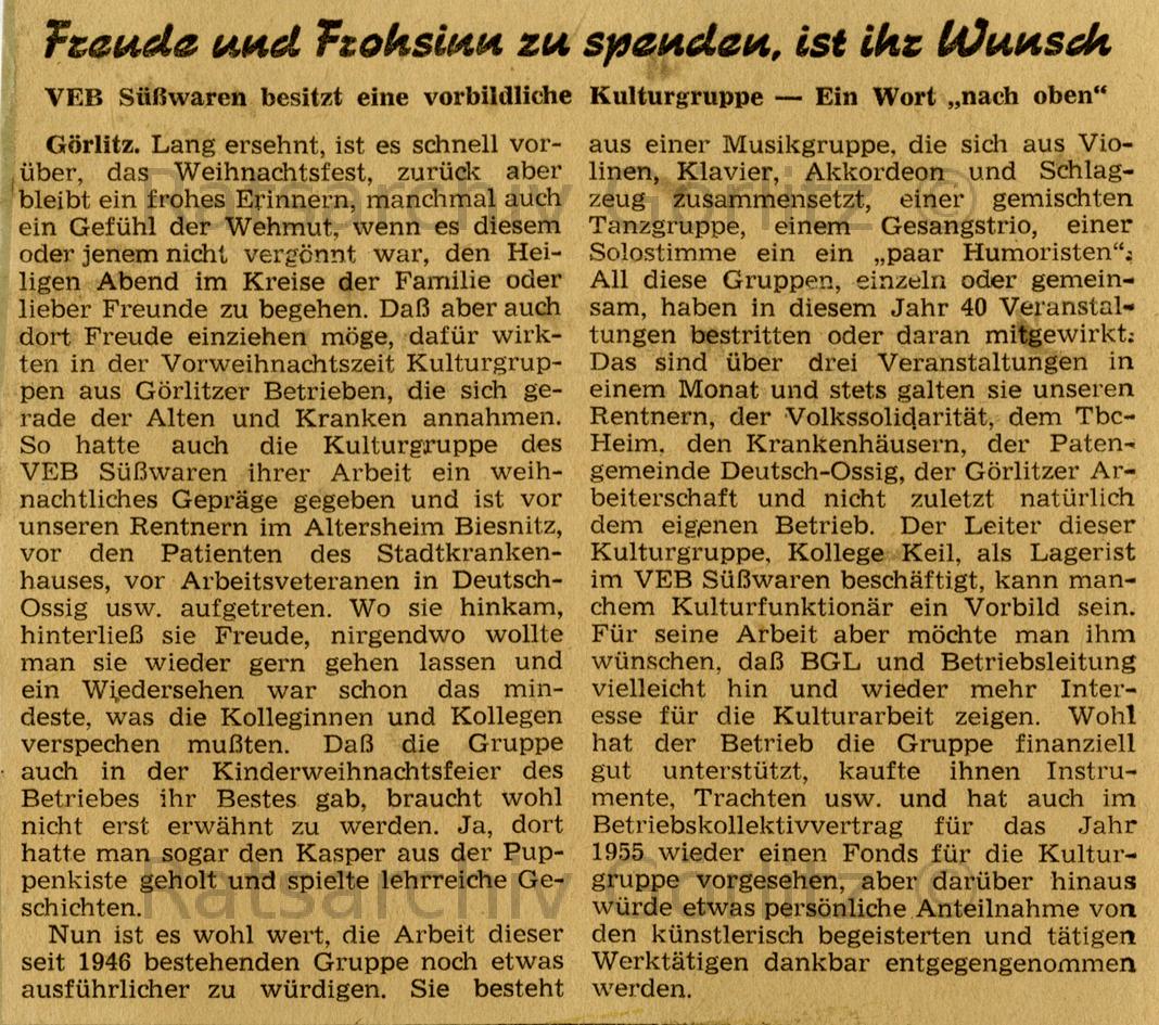 Chronik Kulturgruppe Mattke & Sydow Görlitz, Zeitungsausschnitt