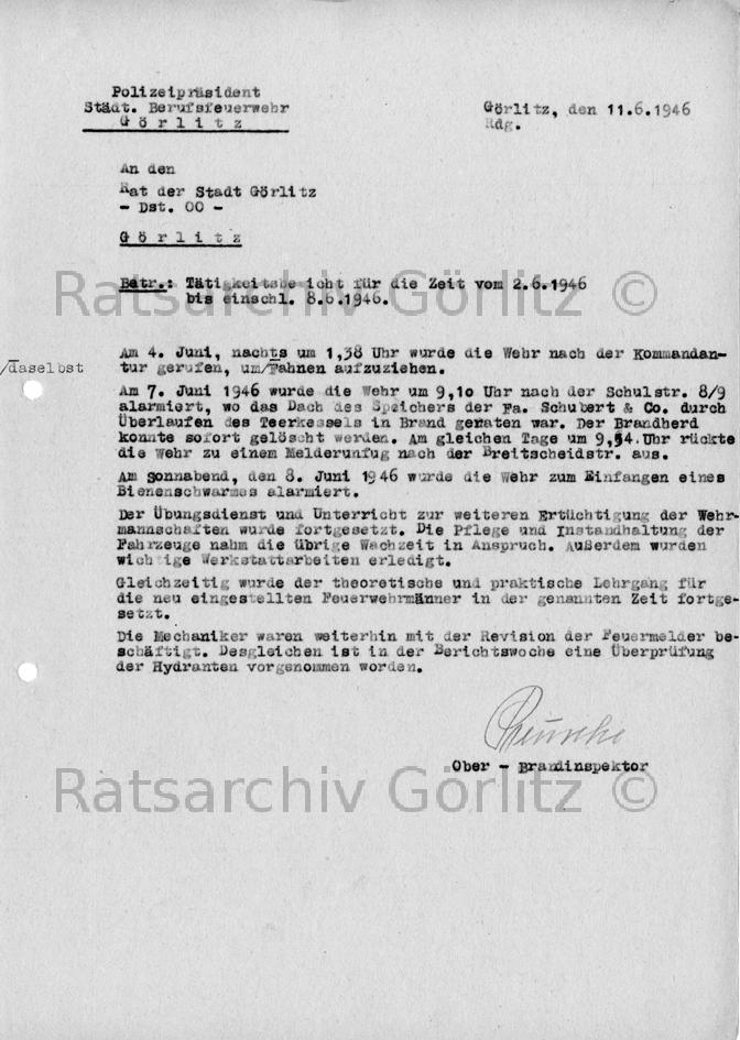 Tätigkeitsbericht Feuerwehr (Schrift)