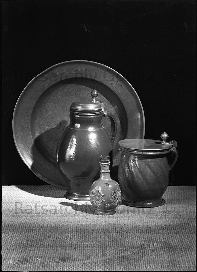 Exponate: Krüge, Teller, Kanne, allg. Motiv