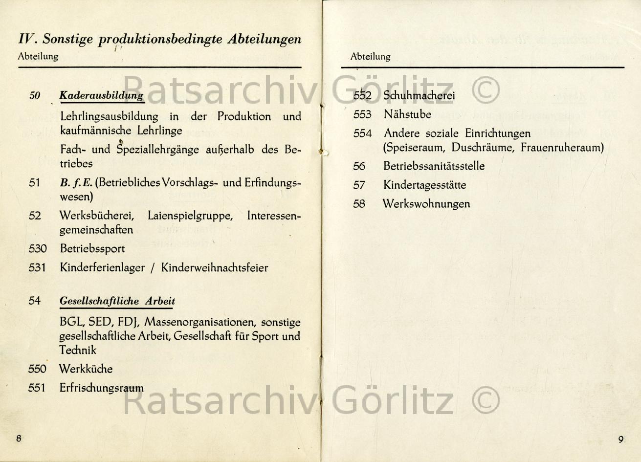 Gliederung des Betriebes