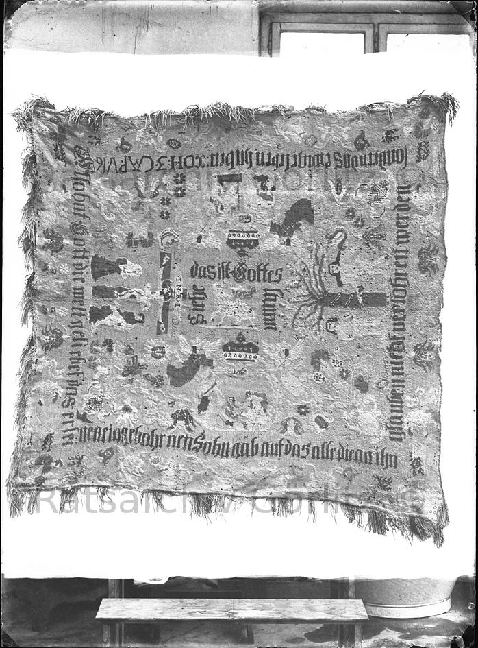 Gestrickter Wandteppich aus der Ruhmeshalle (heute in der Bauernstube Neißstraße 30), Ruhmeshalle