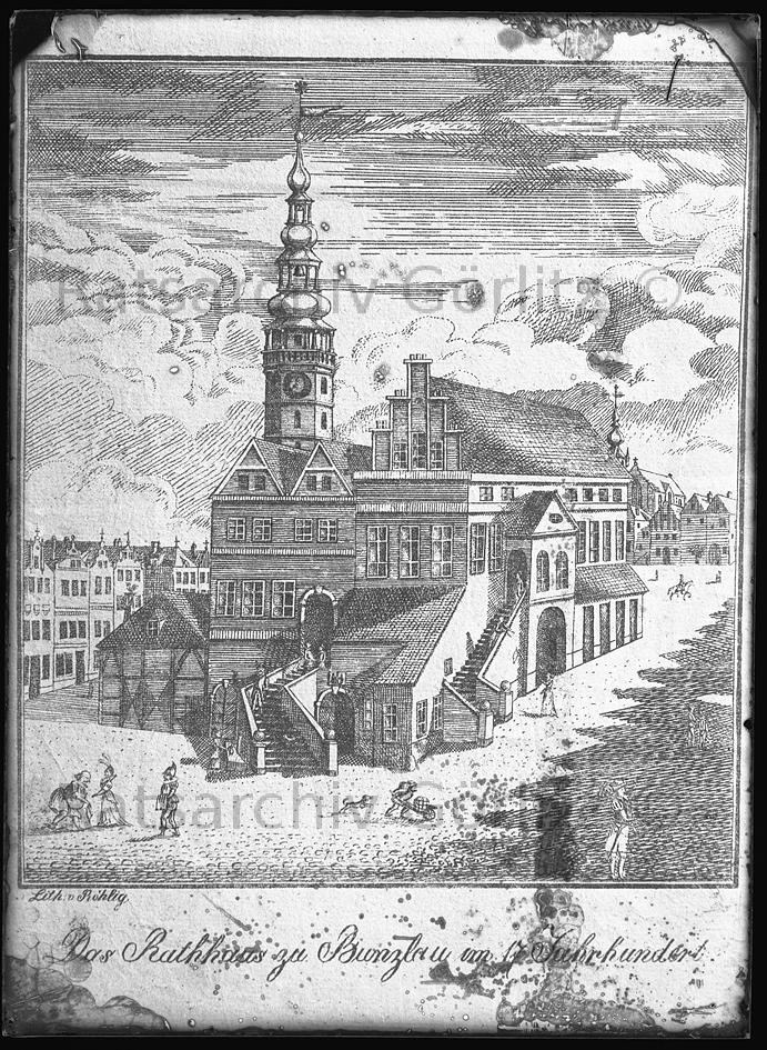 Lithographie: Rathaus zu Bunzlau im 17. Jahrhundert, Gemälde/ Bilder