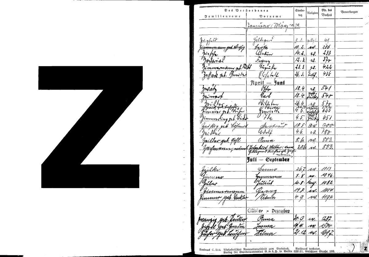 Sterbefaelle 1918 1929 Z