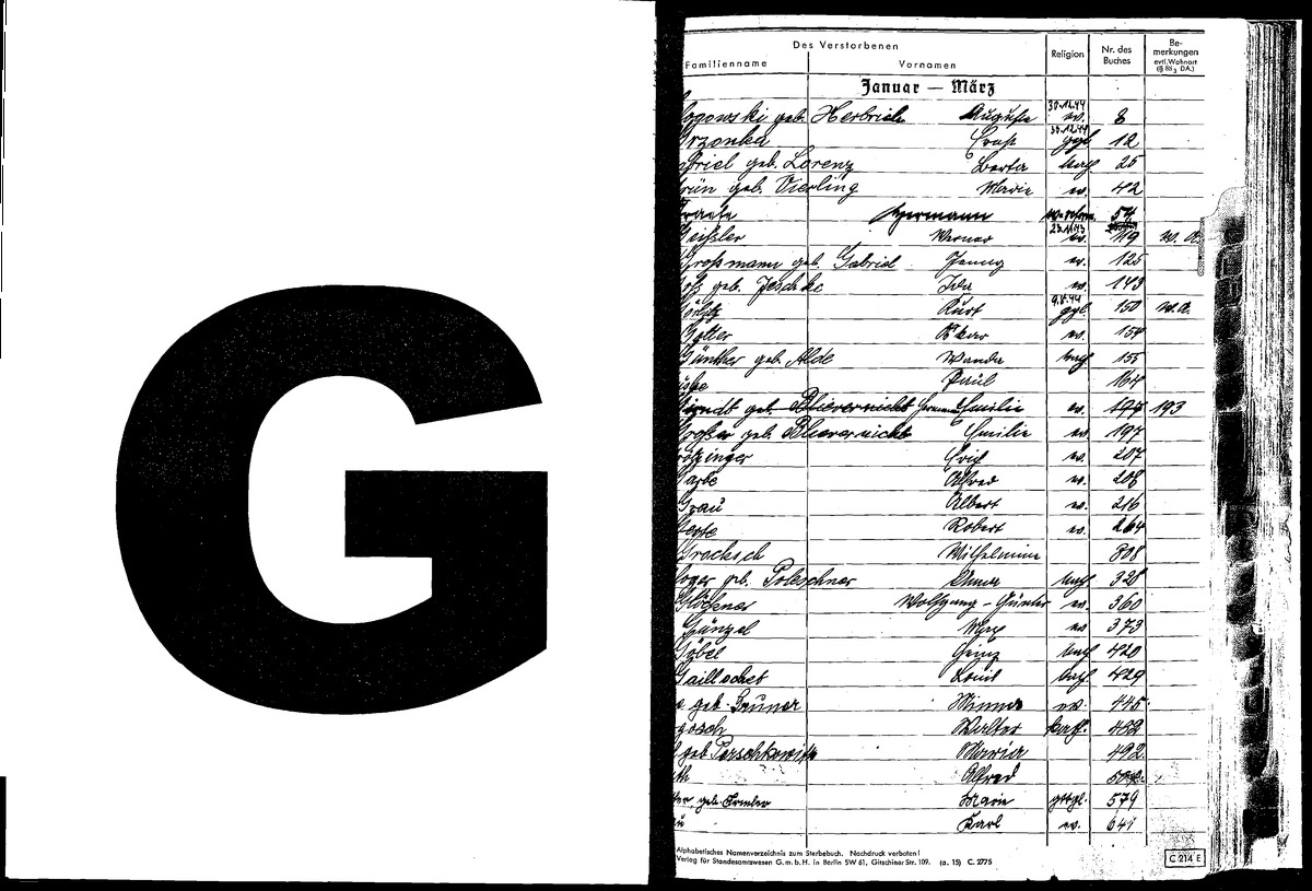 Sterbefaelle 1945 G