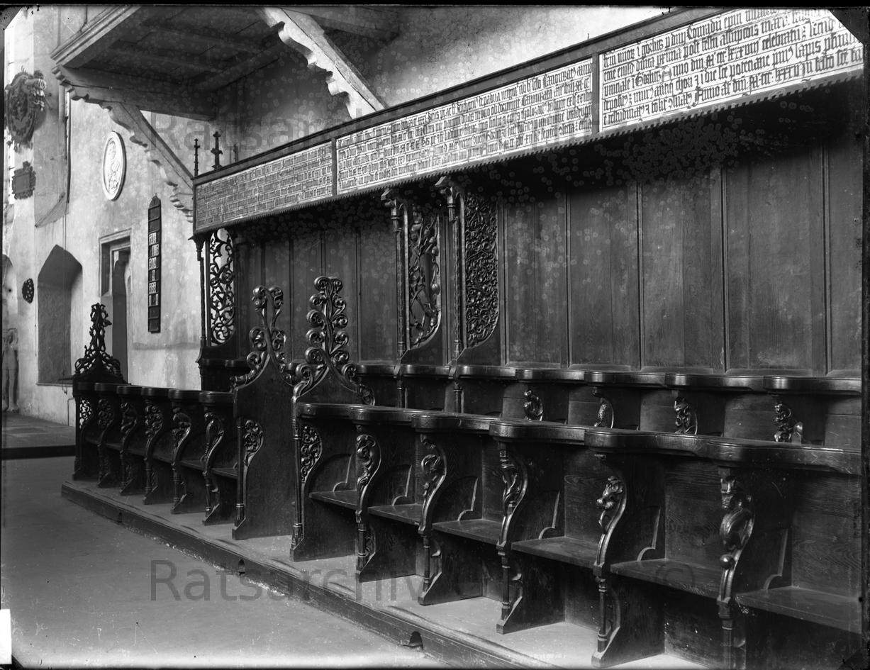 Klosterkirche innen Mönchsgestühl, Inschrift, Südseite, Kirche