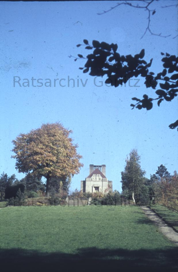 Stadt, Ölberg, Ölberggarten, Blick zum Krematorium