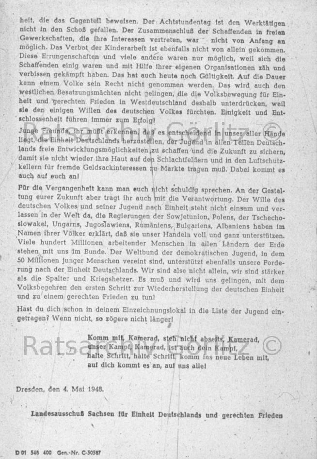 An die Jugend des Landes Sachsen, betrifft Volksbegehren