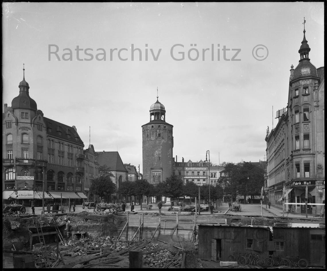 Marienplatz mit Bau Kaufhaus Karstadt Dicker Turm und Kaufhaus Bargou Söhne, Befestigung