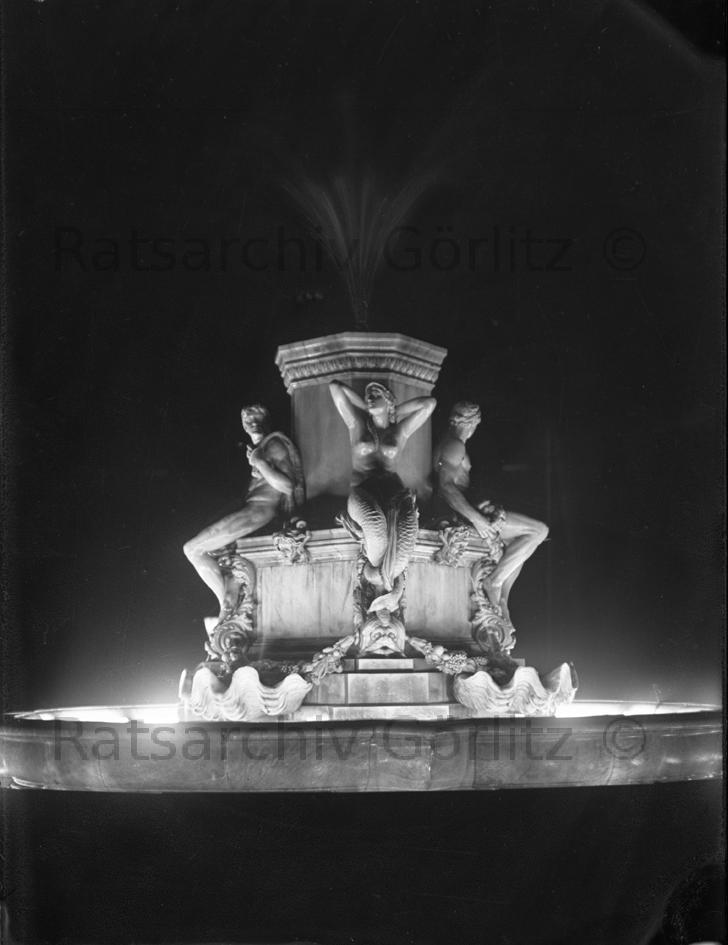 Brunnen auf dem Postplatz beleuchtet ( ohne Muschelminna)